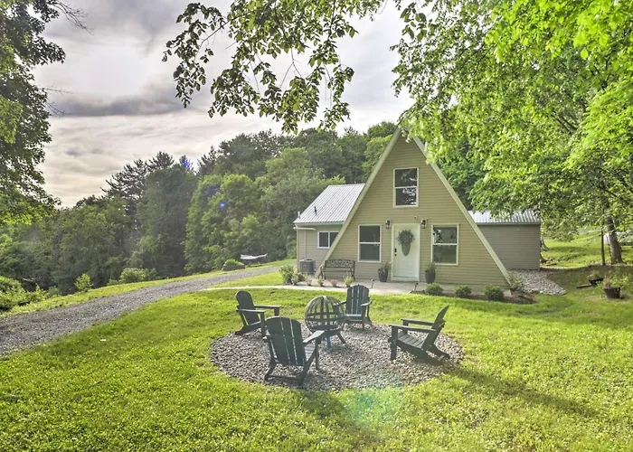La A-Frame Cabin With Hot Tub 5 Mi To Waterford! Melrose, situada a unos 5 km de Kingdom Hall of Jehovah's Witnesses, ofrece a sus huéspedes la posibilidad de relajarse en un jacuzzi.